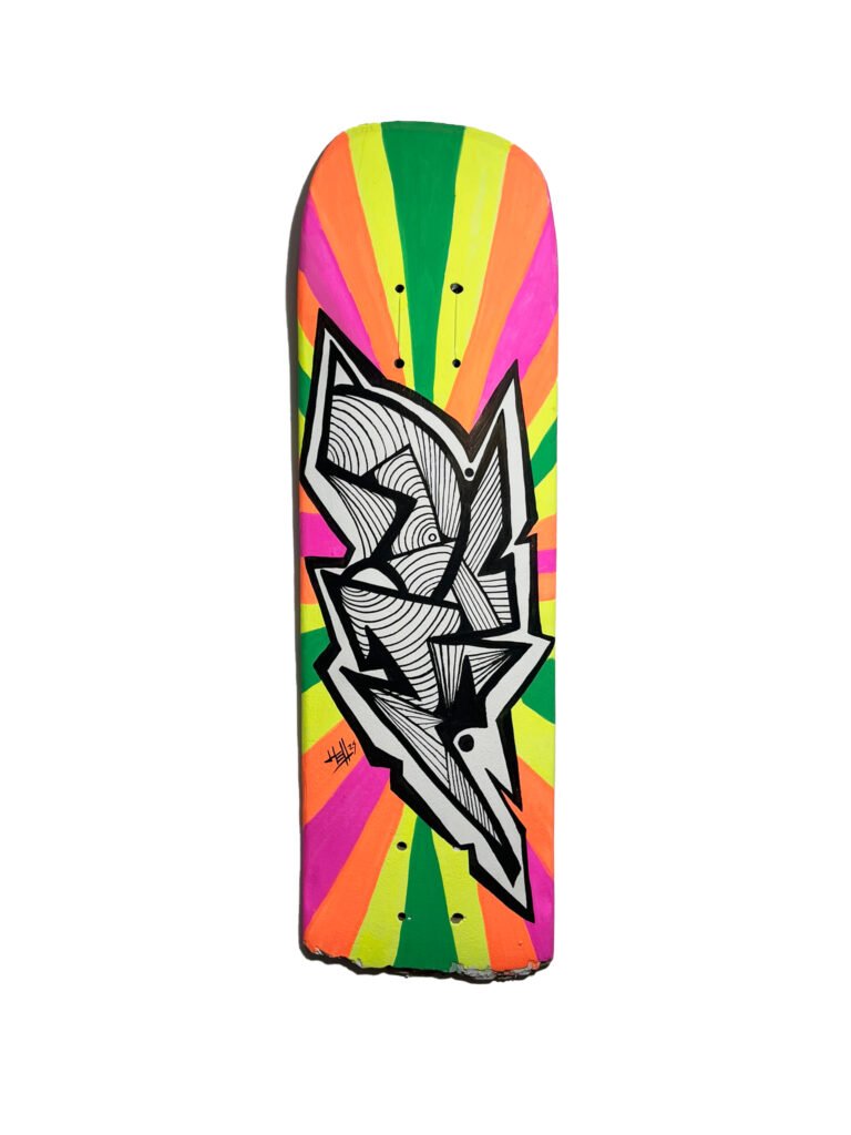 ARTWORK DETAILS SKATE ART collectionRainbow Sun Skate ink on skateboard This work is original. Used skateboards sourced in Buenos Aires, Argentina. Hand painted and varnished finish. size DeliveryAPPROXIMATE DIMENSIONS65 to 20 Cm Please contact us for delivery costs. CONTACT BACK